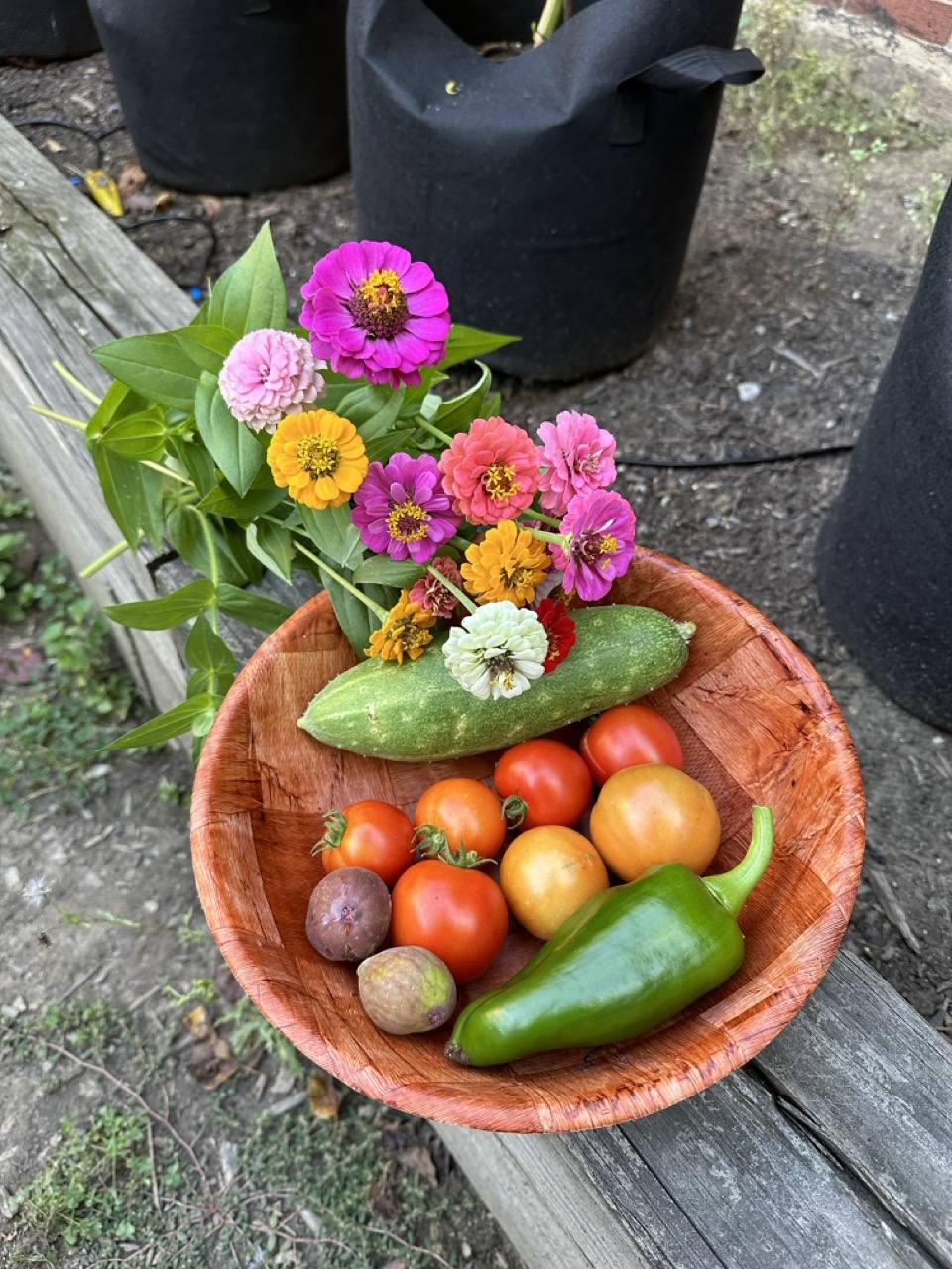 I also did grow a garden with cucumber, tomato, peppers, and a variety of flowers: daisies, dahlias, zinnias, cala lily, cosmos, and lots of roses which came with the property. While my dahlias and cosmos were a fail, my zinnias turned out wonderfully! I even learned how to save seeds which I now have for the coming year.