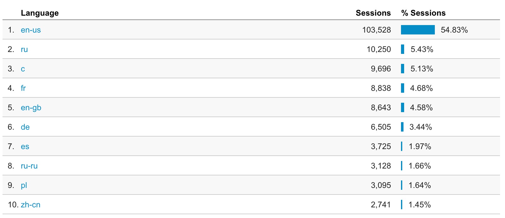 25.4% of the top 10 languages of users who read my blog is not English. While English is the #1 language, the #2 language is Russian, and #3 is Chinese. All of these languages have very different alphabets, grammar rules, and vocabulary. A lot of the vocabulary is unique, too. You know how if you speak multiple languages, there are sometimes words that just don’t translate into other languages? And you don’t even realize that until you try to translate it?