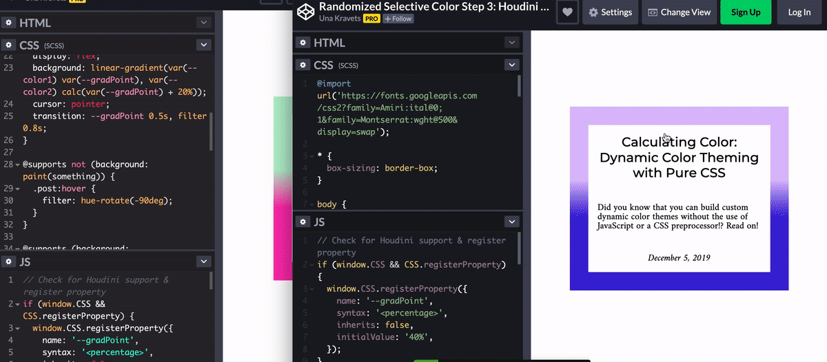 See the Pen Randomized Selective Color Step 3: Houdini Hover by Una Kravets (@una) on CodePen.